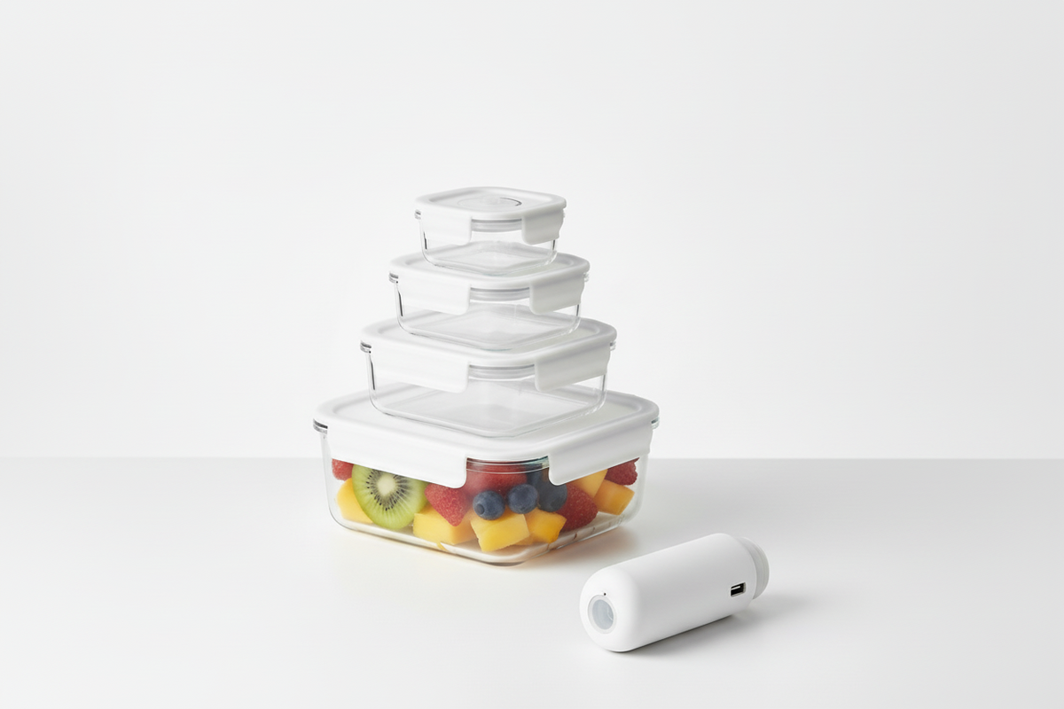 La technologie de mise sous vide approuvée par les chefs s’allie au verre haut de gamme pour une conservation optimale des aliments.